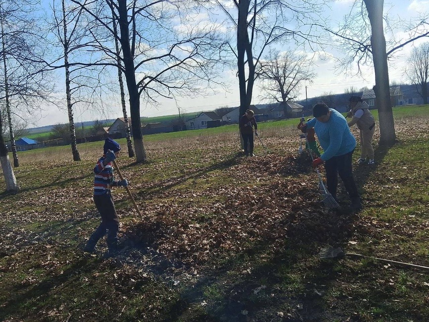 Совместными усилиями участников была проведена уборка прошлогодней травы и листьев.